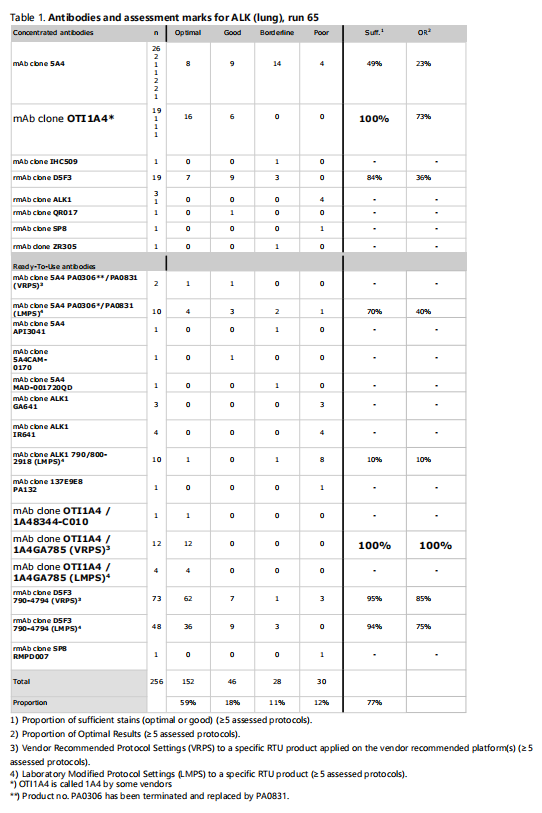 表1( Table1).Antibodiesandassessmentmarksfor ALK(lung),run 65